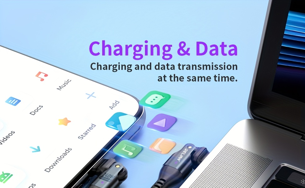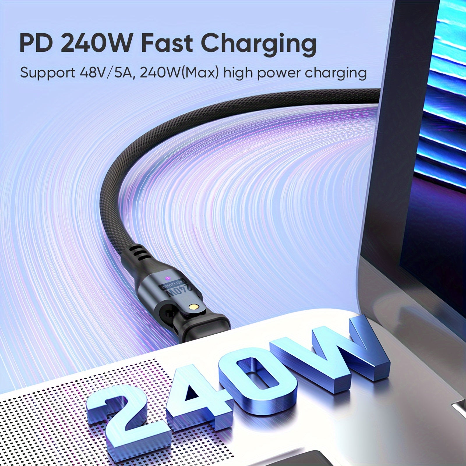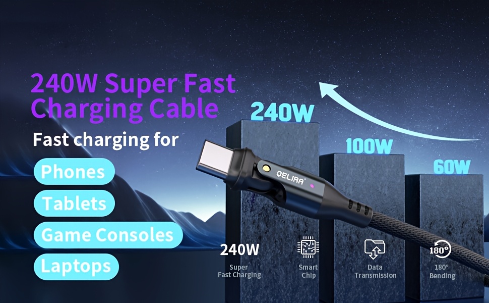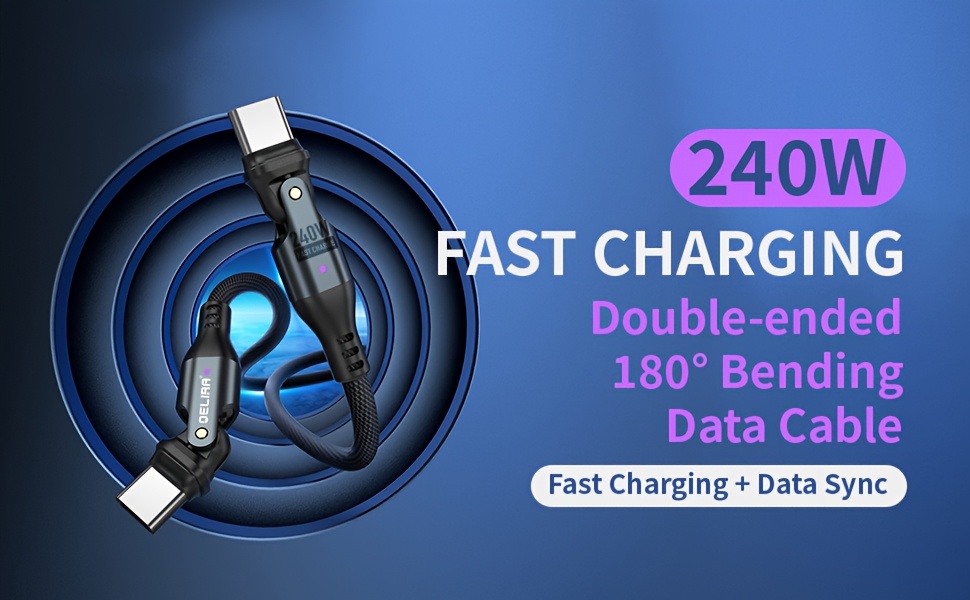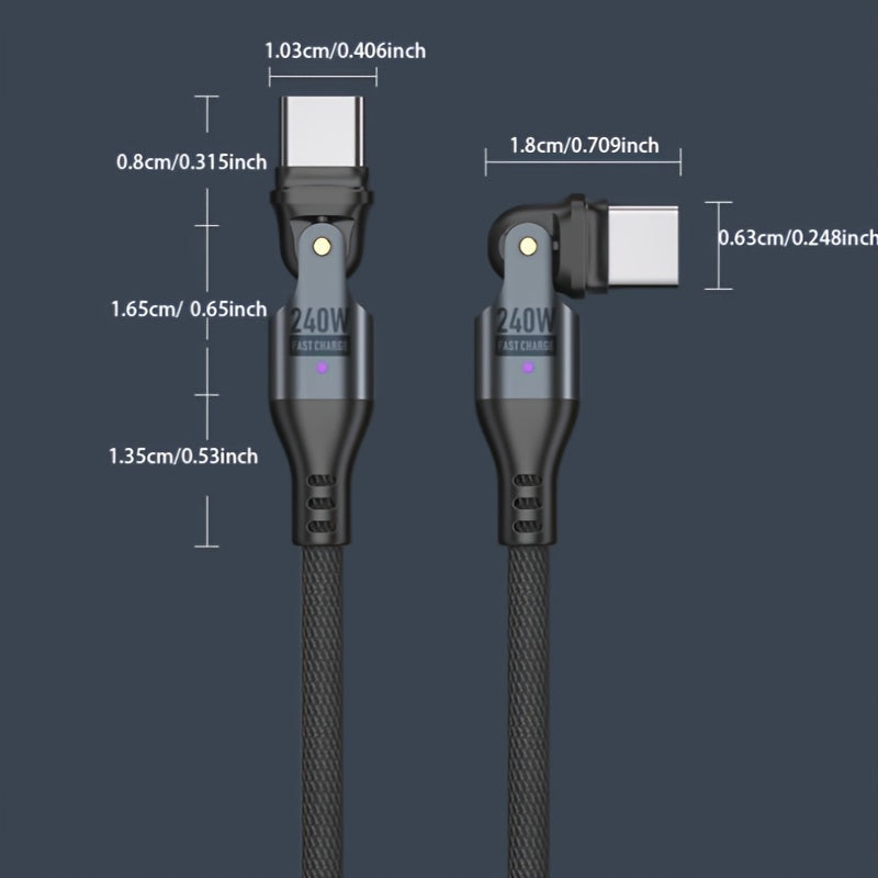 Experience the 240W Fast Charging Data Cable, designed for modern devices. It supports up to 240W of fast charging power, making it compatible with various Type-C interface devices such as smartphones, tablets, game consoles, and laptops. Whether you're at home or traveling, this cable provides an efficient charging and data-sync experience.