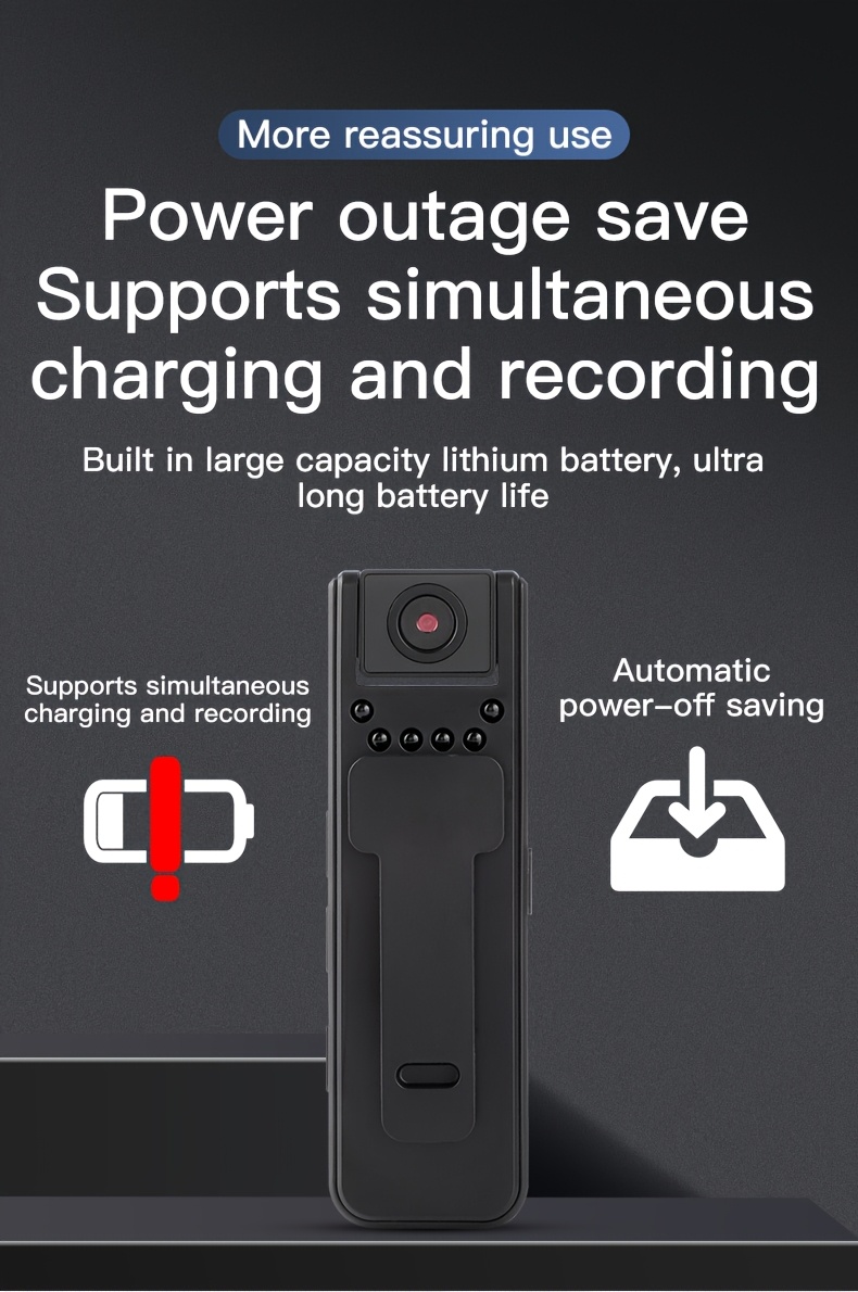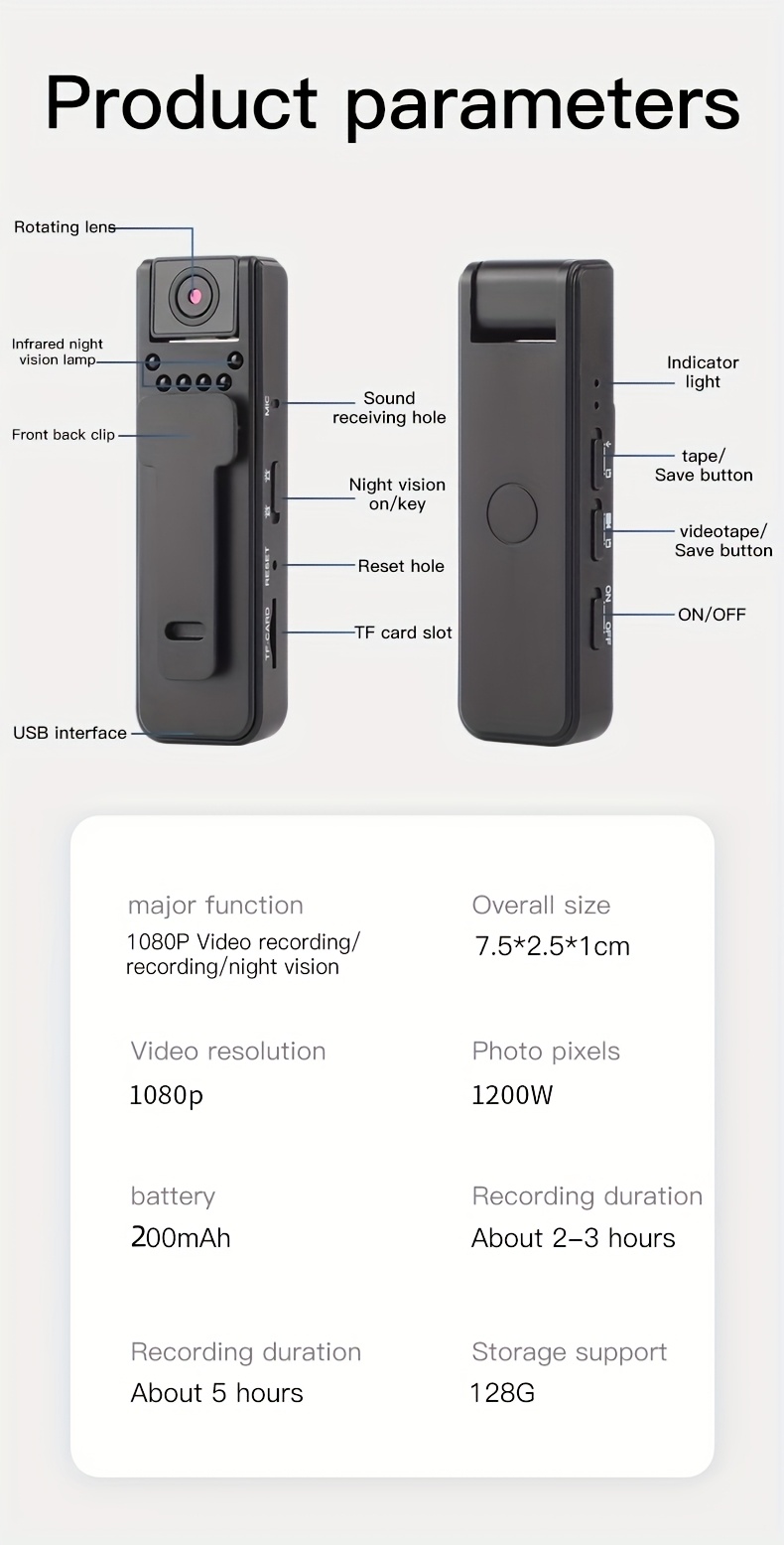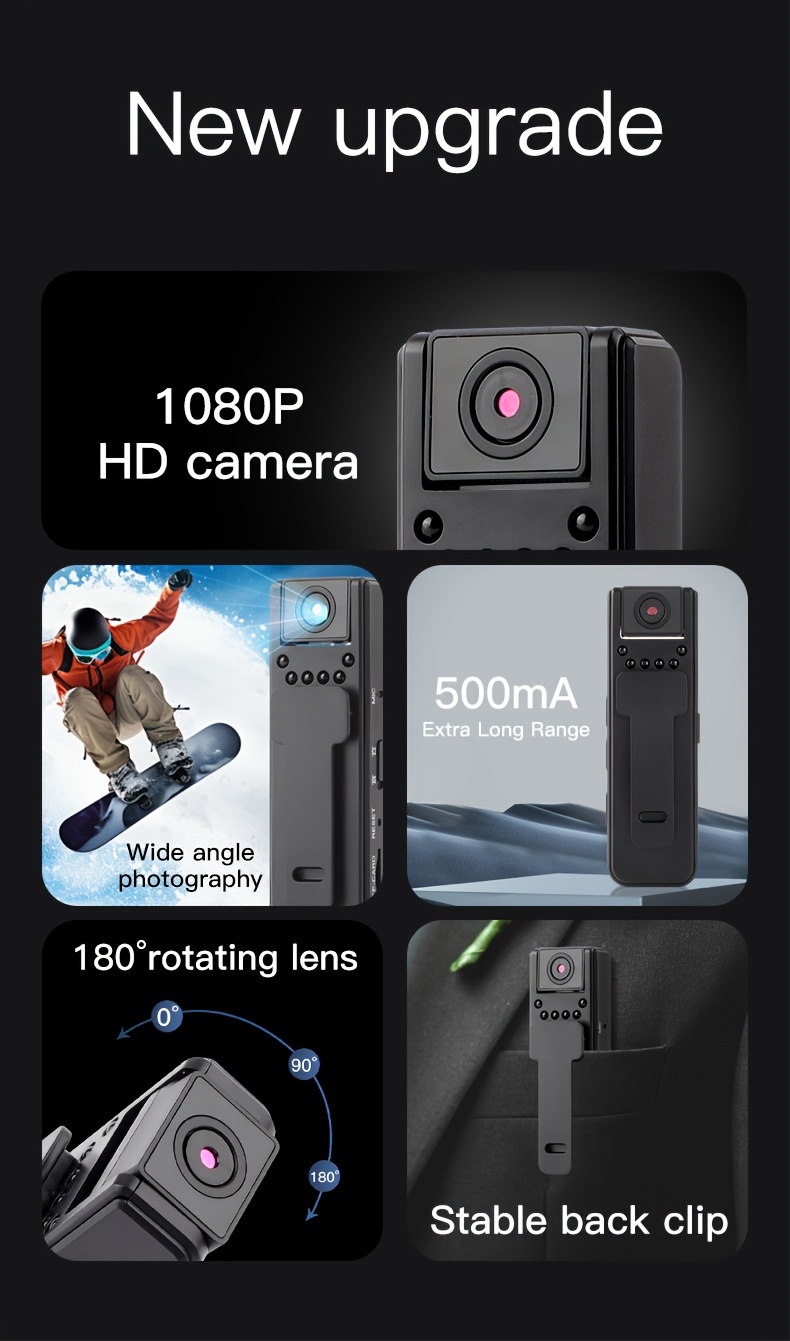 1080P Mini Camera - 180° Rotatable Lens - Motion Detection - Infrared Night Vision - USB Rechargeable - 1080P Resolution - Audio and Video Recording Function - Suitable for Security Monitoring and Travel