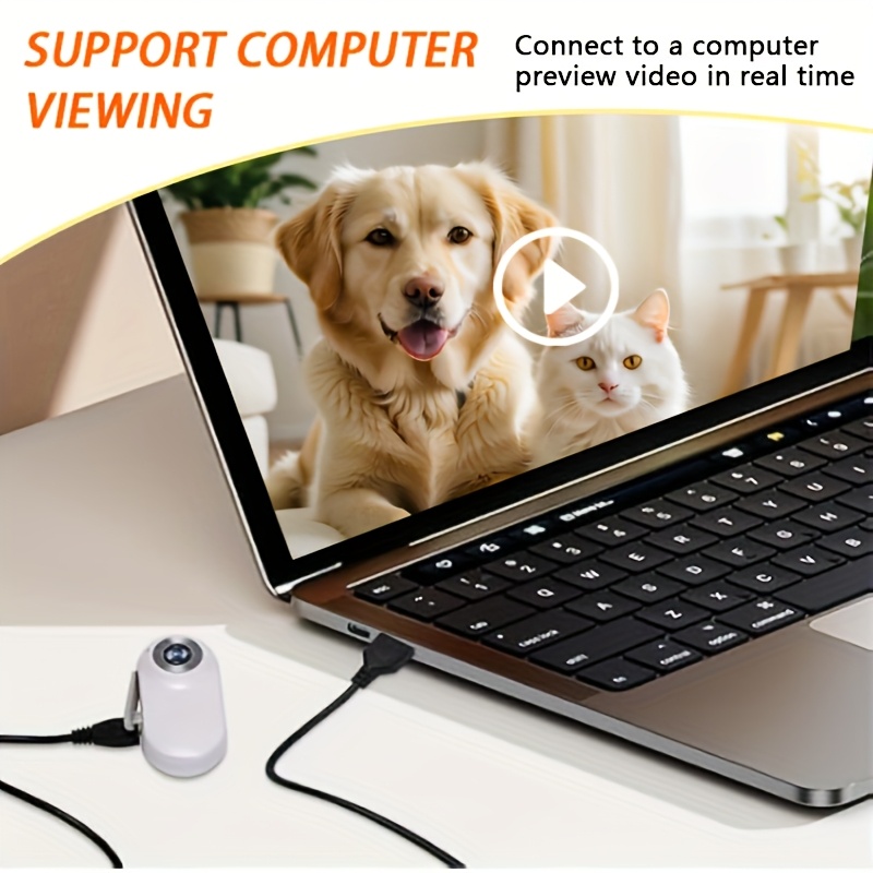 1080P Pet Camera with Display - First-Person View, Long-Lasting 350mAh Rechargeable Battery, Loop Recording, USB-Powered, Compatible with SD Cards