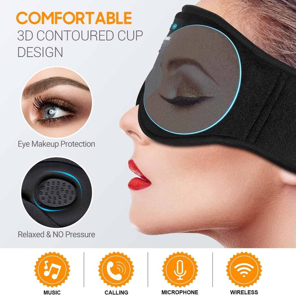 1pc Wireless Sleep Mask with Wireless 5.2, Built-in Headphones, USB-C Charging, Soft Pink/Black/Blue/Gray/, Lightweight Sleeping Mask for Women & Men, Travel, Flights, Naps - Ideal Gift for Music Lovers, Sleep Mask Wireless,