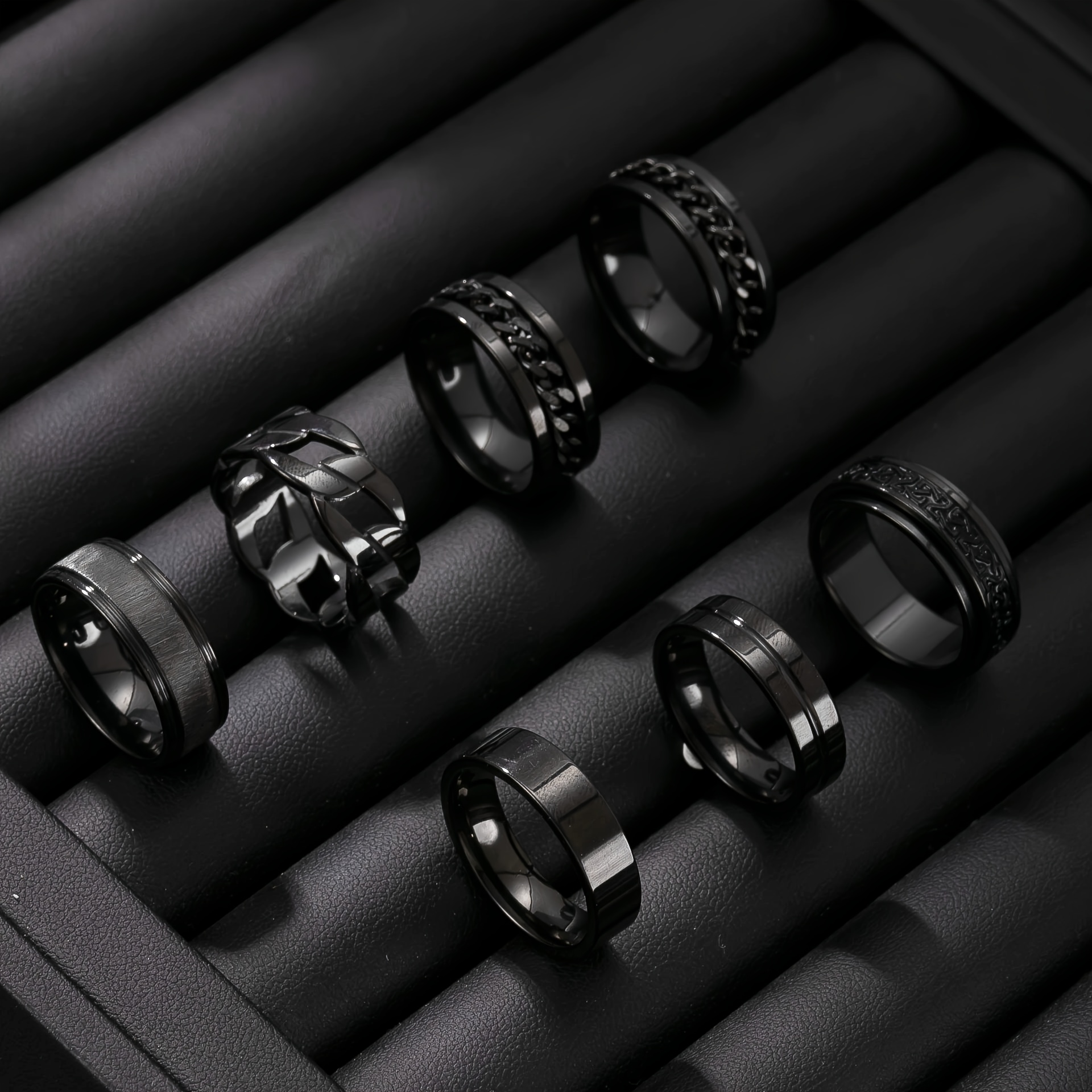 7pcs Stylish Stainless Steel Men's Rings Set | Modern Jewelry, Durable Metal, Sleek Finish
