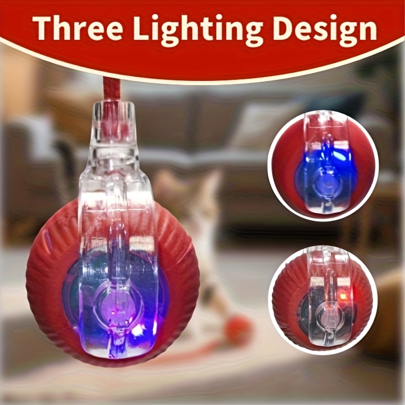 A Red Interactive Spherical Pet Toy with a Tail And Vibration/Lighting Features for Cats - USB Rechargeable Toy for Dogs And Cats.