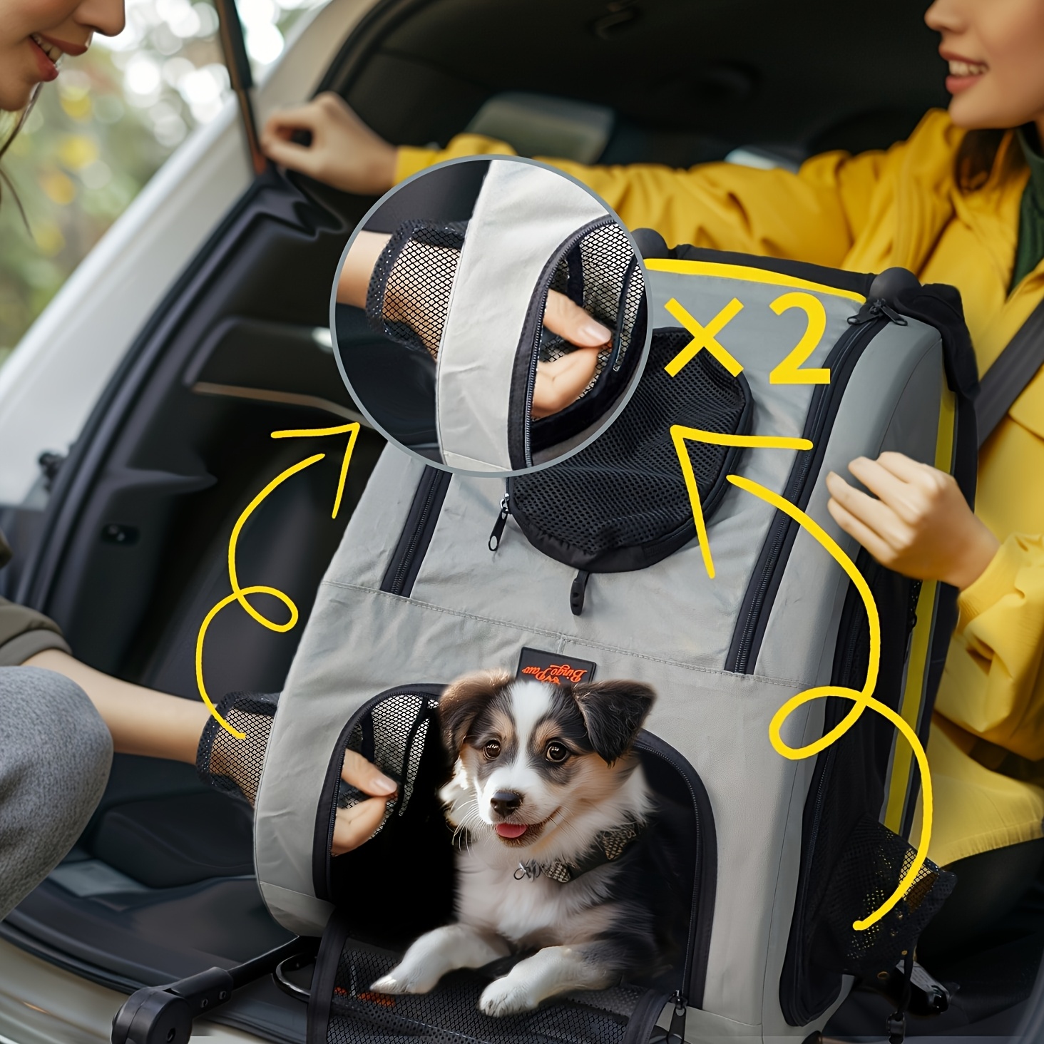 A multifunctional pet stroller that can double as a pet car seat for enhanced convenience and ease of transport.