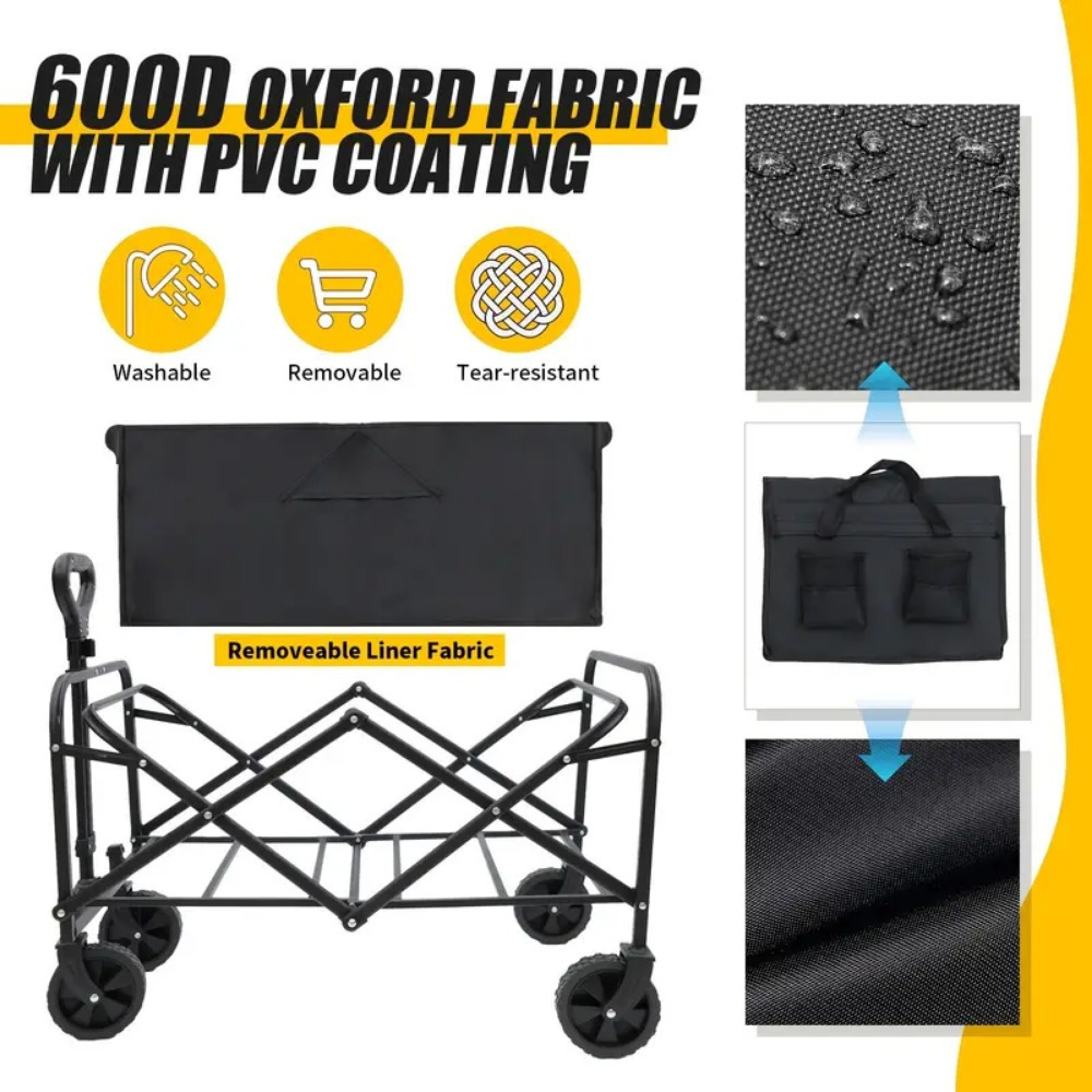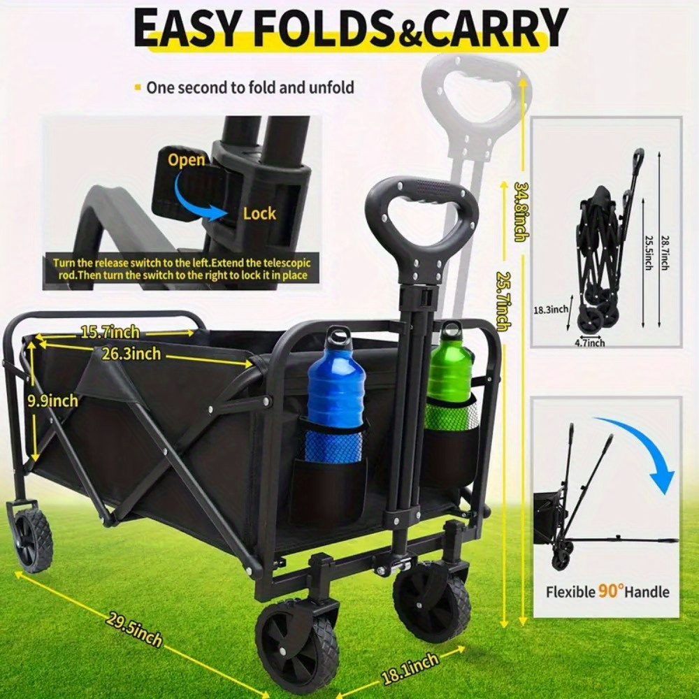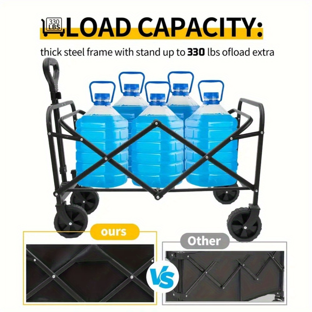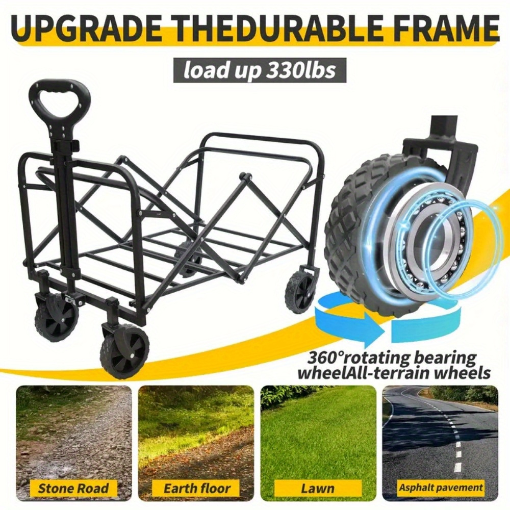 Heavy Duty Folding Camping Shopping Cart, Large Capacity, All Terrain Rugged Design, Multifunctional Sports Gear Transport, Multi-Function Camping Gardening Beach, Rugged Design Durable Tire Construction Heavy-Duty Utility Cart