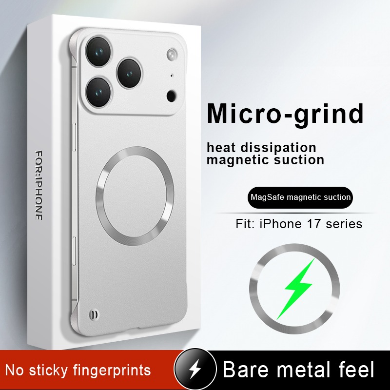 Phone Case - YX Luxury Metallic Paint Magnetic Edge-Less Phone Case for Iphone 17 Pro Max, 16 Pro, 15 PM, And 14, Featuring High-End Magnetic Heat Dissipation, Breathable Design, Semi-Enclosed, Unique And Ultra-Thin design