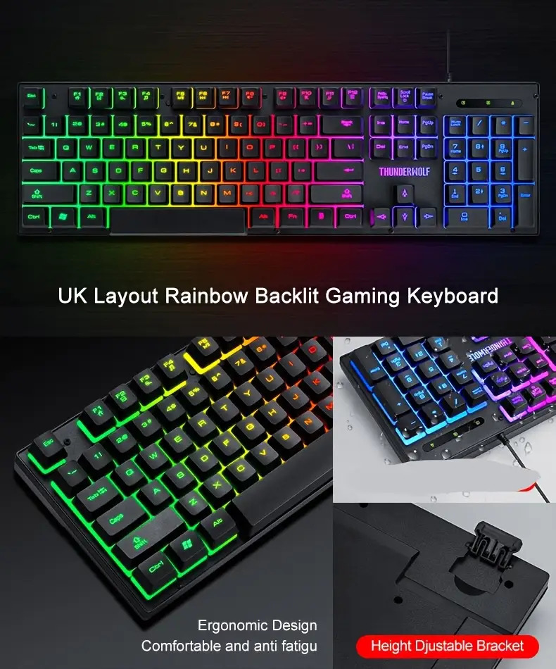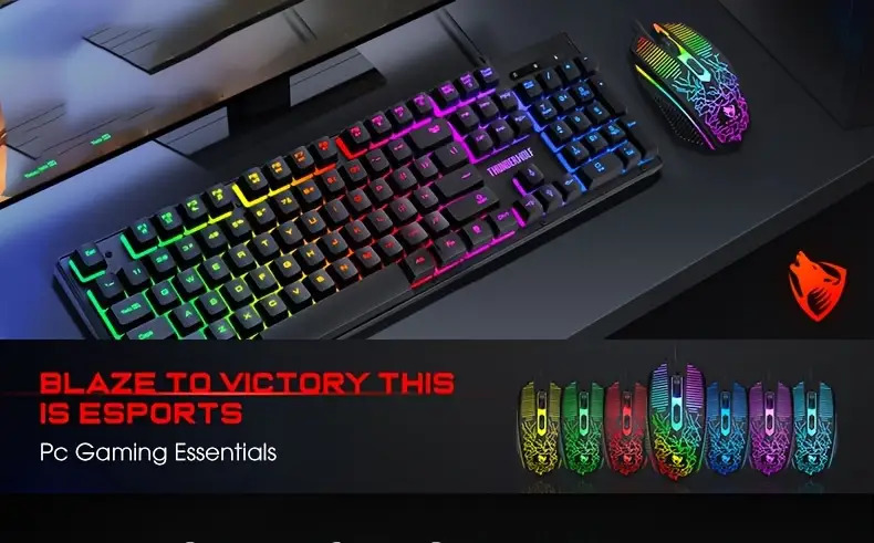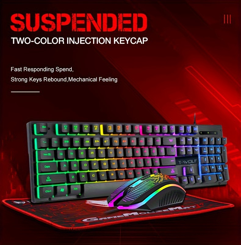 TF31 Comfortable Gaming Keyboard and Mouse Set with 3-in-1 Mouse Pad - Ergonomic Design, Optical Sensor, Durable Build for PC Gamers & Office Use, Easy to Clean, No Battery Needed, Gaming Keyboard, Office Work, Sleek Design,