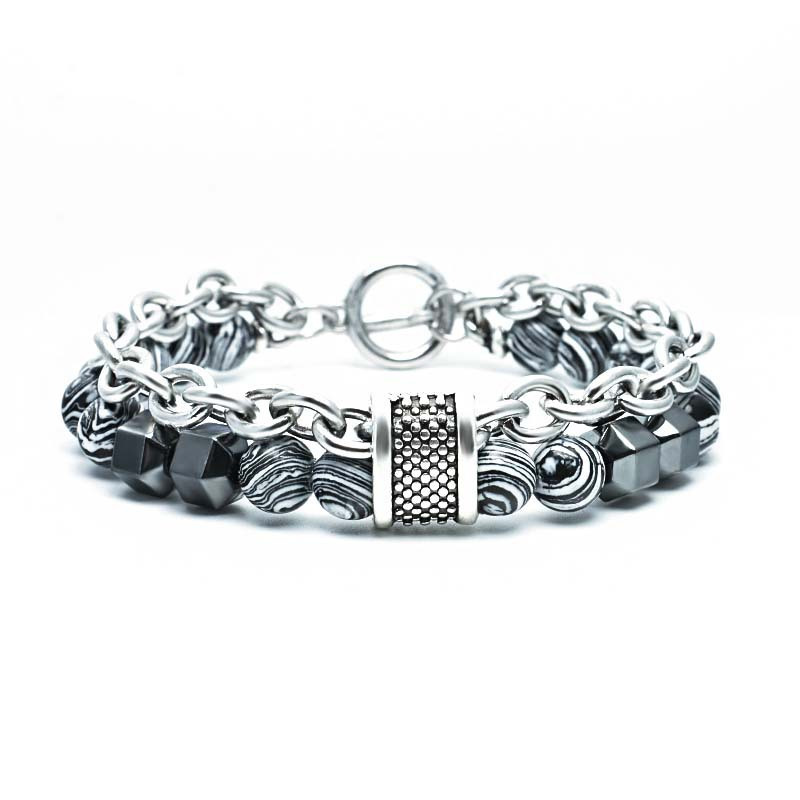 Two-Tiered Multi-Hued Malachite Bead Bracelet Featuring an O-T Clasp, Perfect for Hip Hop Fashion And Everyday Use
